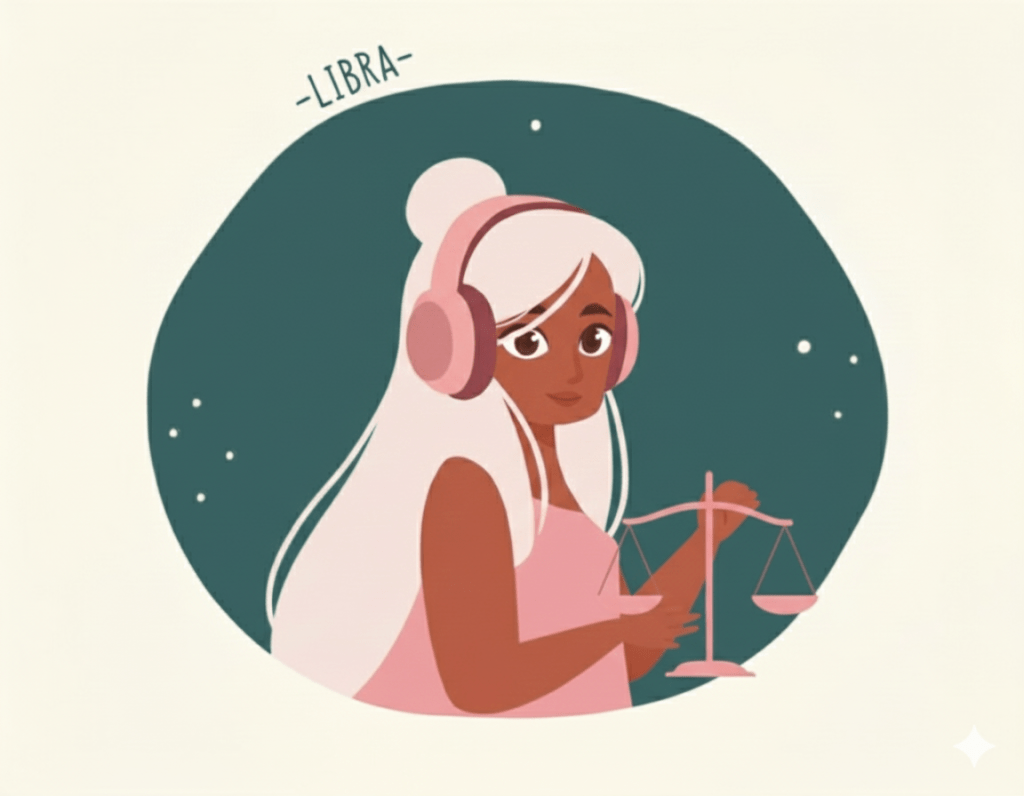 The Vibe: Ruled by Venus, like Taurus, you are the Cardinal Air sign obsessed with beauty, symmetry, and partnership. You need a harmonious, uplifting environment to think clearly. Anything harsh, aggressive, or off-key is a mood killer.