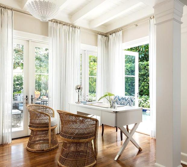 Resorts are masters of texture — think woven baskets, soft throws, and linen curtains. You can copy this look with small details like a rattan storage basket, a cozy rug, or even a bamboo pen holder. These tactile touches make your office feel less sterile and more like a curated getaway.